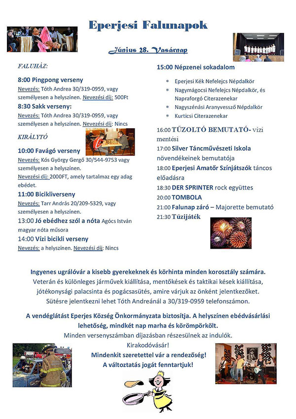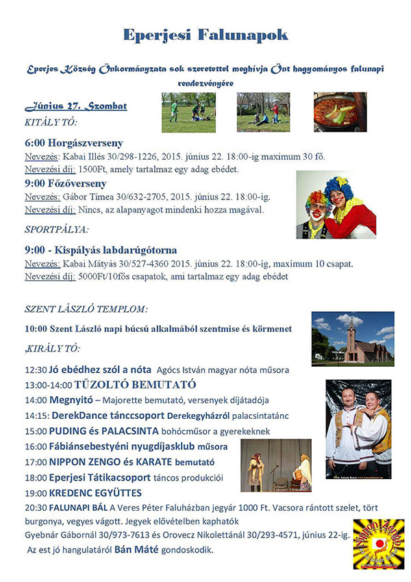 2015. június 27-28-án rendezik Eperjesen a falunapokat. Minden érdeklődőt szeretettel várnak a szervezők!