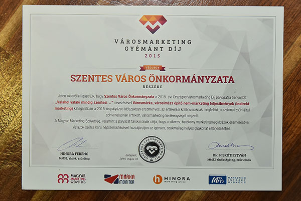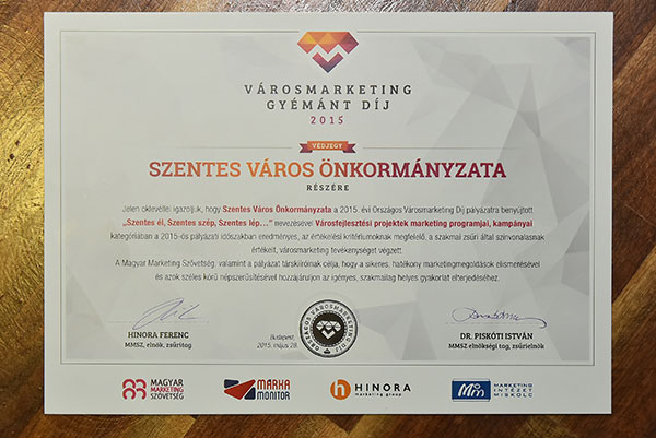 Kétszeres városmarketing gyémánt védjegy Szentes városának