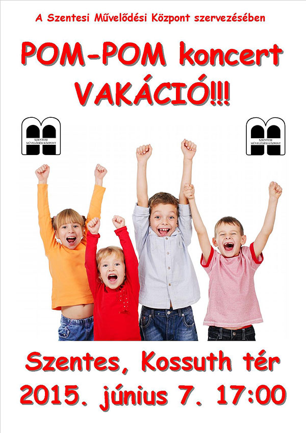 A Városi gyermeknapon a Pom-Pom együttes ismét a "hazai" közönség előtt lép színpadra. A vasárnap 5 órakor kezdődő műsor aktuális: Bendegúz és osztálytársaik utolsó tanítási napja elevenedik meg a színpadon feleletekkel, földrajz, ének, matek és tornaórákon. Egy héttel a valódi iskolazárás előtt a Pom-Pom koncert bizonyosan jó szórakozást nyújt kicsiknek és nagyoknak egyaránt.