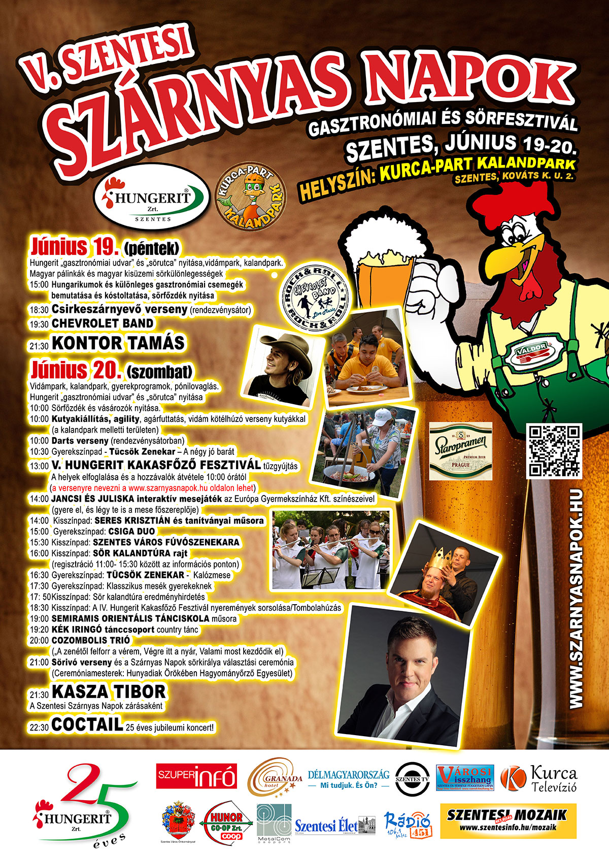 A programokról még annyit, hogy három színpadon folynak majd a rendezvények, így a nagyszínpad mellett lesz gyerekszínpad, és a főzők színpada. Külön plakát készült a gyerekprogramoknak a jobb áttekinthetőség érdekében, de lesz még egy különlegesség is. Idén lenne 25 éves a Coctail zenekar, mely a 90-es években nagyon népszerű volt Szentesen.