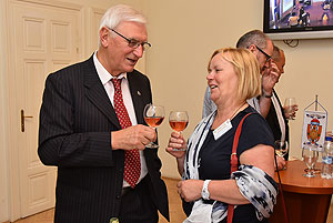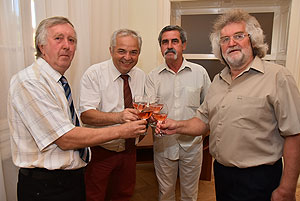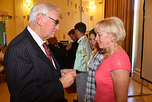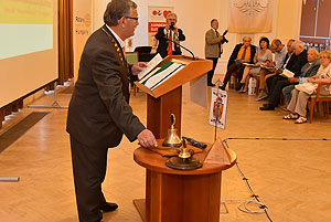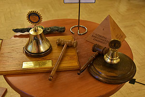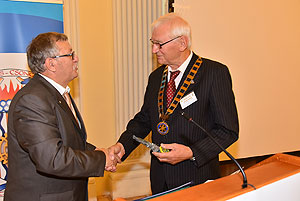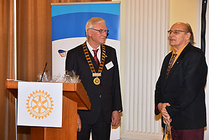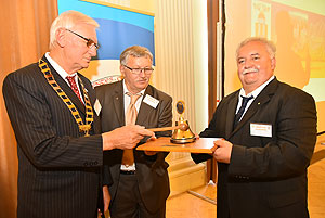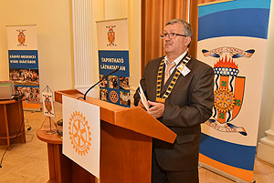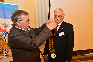 Végezetül a Rotary elnökség ünnepélyes átadása következett. Ledó Ferenc leköszönő elnök Szarvas Pálnak az új elnöknek adta át a "staféta botot" a 2015/2016-os esztendőre.
