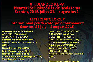 Szentesen, az Üdülőközpontban 2015. július 31. kezdődik a három napos XII. Diapolo Kupa utánpótlás nemzetközi vízilabda torna. A 33-as és az 50 méteres medencékben naponta reggeltől késő délutánig zajlanak az összecsapások. Összesen 35 csapat játszik a végső helyezésekért, köztük öt lány csapat – egy csoportban. A fiatal pólósok várják az érdeklődő sportbarátokat, hiszen több színvonalas viadalt is láthattunk majd ezeken a napokon.