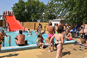 A tegnapi nap volt az idei nyár legmelegebb napja melyet sokan a strandon vészeltek át. Reggel 7 óra 45 perckor a strand új bejáratánál már csaknem ötvenen várakoztak, hogy kihasználják azt az akciót, melynek köszönhetően ezen a napon a szentesi lakcímmel rendelkezők ingyen hűsölhettek valamint próbálhatták ki az új wellness részleget is.