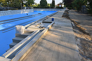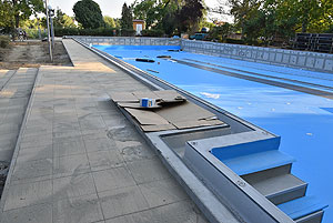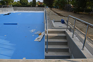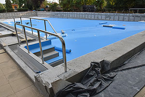 Talán a projekt leglátványosabb beruházása a régi 50 m-es medence felújítása. A hosszú előkészítő munka eredményeként nem csak küllemre, hanem gépészetileg is megújul ez a medence. Új töltő ürítő rendszer keringteti majd az „50-es” szabadtéri úszómedencében. A két hosszoldali medenceperem visszabontása után új, rozsdamentes acélból hajlított medenceperem készül ún. Wiesbaden-i feszítővályúval, így ennél a medencénél is feszített víztükör kerül kialakításra. A felújítás kiterjed arra is, hogy 2 rétegű vízszigetelést kap a medencehéj, az előlépcsők és a lábmosók újra lesznek csempézve, a medence minden oldala mentén új körüljáró készül 2 méter szélességben. Új, rozsdamentes acél csőszerelvényekből készülnek a kapaszkodók, korlátok, létrák és új ugrókövek lesznek elhelyezve a medencevégeken.