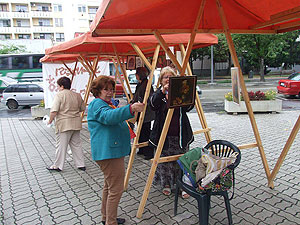 A szentesi ecsetforgatók egy részének, lelkes kis csapatának szabadtéri kiállítását tekinthették meg a Városi Könyvtár mellett, akik ebben a szomorkás esős időben útra keltek. A Kapocs Egyesület szervezésében megvalósuló kiállításnak a célja az volt, hogy minél több emberhez eljusson a művészet és ne csak a négy fal közé legyen az szorítva. Ezen a napon 12 ecsetforgató alkotásait tekinthettük meg.