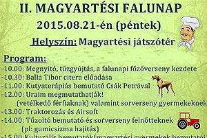 A településen egész napos programokkal várják az érdeklődőket 2015. augusztus 22-én (szombaton). Többek között sportmérkőzésekkel, versenyekkel, gyermek- és felnőtt színházakkal, főzőversennyel, koncerttel és utcabállal várnak mindenkit. További részletek a plakáton!