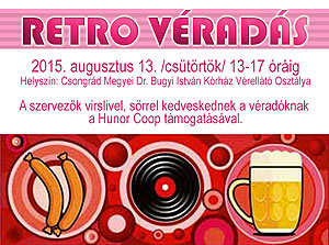 A Magyar Vöröskereszt Szentesi Területi Szervezete és a Csongrád Megyei Dr. Bugyi István Kórház Vérellátó Osztálya idén is megszervezi a már hagyományos RETRO véradását. Retro véradásra várják a véradókat az országban 2015. augusztus 13-án. Szentesen a sör és a virsli mellett ügyelnek, hogy a környezet is retro legyen.