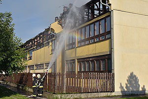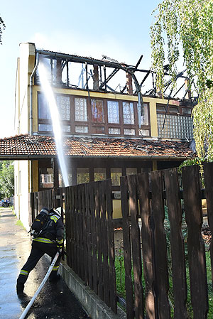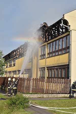 Mint ismeretes egy 8 éves gyerek okozhatta a tüzet péntek délután a leégett Rigó Alajos Diákotthon udvari hátsóudvari részén. Másnap visszatértünk a helyszínre, hogy pontos képet adjunk a károkról. A katasztrófavédelem munkatársai végigvezettek a káreset helyszínén és érdekes dolgokra hívták fel a figyelmet. Valamennyi tűzzáró vasajtó tette a dolgát, így a lépcsőházakban nem keletkezett kár. Az intézmény kazánháza sem sérült meg, mert az a most felújított oldalon helyezkedik el. A beton födémnek köszönhetően az alatta lévő tantermekben sem okozott jelentősebb kárt a tűz, de ez látszik a fotókon is. A tűz a lakóterekbe nem jutott be, mert igazán értékmentő módon dolgoztak a szakemberek. Elkerülhetetlen volt, hogy a víz ne jusson be a folyosókra, aminek csak a laminált padló nem örült. Az intézmény iskolarészének a tetőszerkezete égett le teljesen. A gyermekotthon feletti tetőszerkezet csak megsérült és kis részen, de a tűz ebbe az irányba való terjedését megakadályozták.