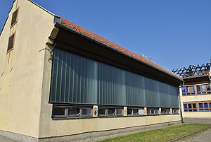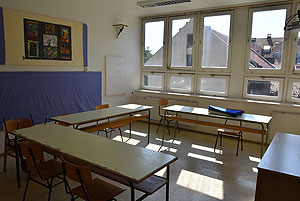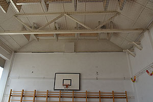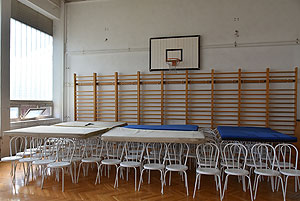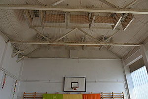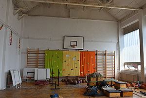 A tornaterem már be volt rendezve az évnyitóra, látszik a 2015/2016-os felirat a bordásfalakon lévő dekoráción. A tornaterem felszerelései sem sérültek komolyabban a szertárban, pedig mögüle indult a tűz. Ebben az esetben szerencsétlen volt az épület építészeti kialakítása, mert lambériával volt borítva az ereszalja és az gyorsan tova vitte a lángokat, mely az épület fala mellett kúszott fel.