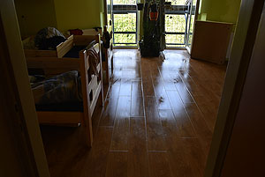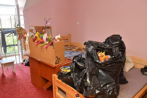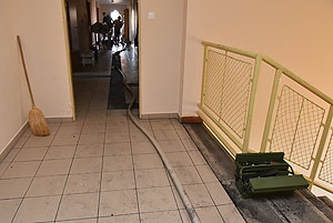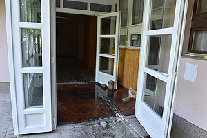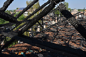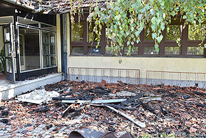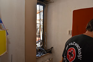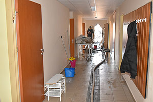 Az épület padlásterének és a lakószobák (melyek a padlástérben vannak elhelyezve) találkozásánál sikerült a tüzet lokalizálni. A képeken jól látszik, hogy a most felújított résznek semmi baja sem lett, az intézmény konyhája és gépészete semmilyen kárt nem szenvedett. Egy-két helyen ázott át a mennyezet, de ez a legkevesebb, ami csak történhetett.