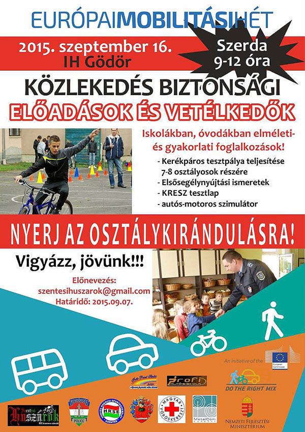 Az Európai Mobilitási Hét az Európai Bizottság által 2000. évtől indított kampány, amely szeptember 16-22. között kerül megrendezésre. A kampány célja, hogy hosszú távon hatással legyen a városi közlekedési problémák megoldására, felhívja Európa polgárainak a figyelmét a helyes közlekedési eszközök megválasztására. Mit jelent ez? Ha tehetjük induljunk munkába, kirándulni, sportolni, ügyeket intézni kerékpárral, gyalog, görkorival, vagy tömegközlekedési eszközökkel.