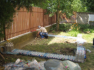 Remélhetőleg a tél sem fog kárt okozni a házban, mert az alsó négy sor vízzel lett majdnem teletöltve, hogy stabilan álljon a ház - tudtuk meg Szilviától.
