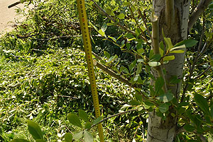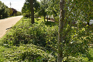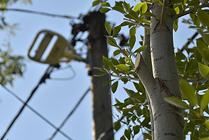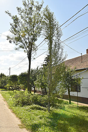 Ez világos, de kérdem én, hogy a Bercsényi utcában lévő kínai nyárfa 88 centiméterén nőtt az úttól 210 cm-re lévő ágacska mit takar az új ledlámpa fényéből? Gyakorlatilag a fa teljes keleti oldalát levágták! A pontosság kedvéért a villanyoszloptól 270 cm-re ültettük a fácskát. A fafajta kiválasztásánál és az ültetésnél gondosan figyeltünk arra, hogy ne legyen nagy lombú, ne nőjön bele a vezetékbe pont az ilyen csonkítások elkerülése végett.