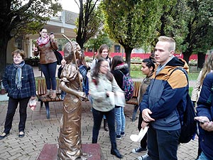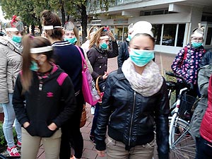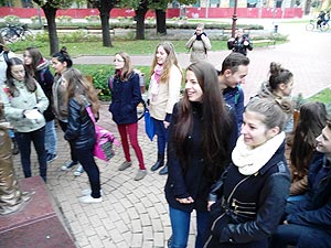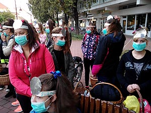 2015. szeptember 30-án megtörtént minden idők legdurvább szívatása a Közgéseknél, mert hát mikor dúlnak a hormonok és rügyeznek a homlokok a 12 c osztály azt találta ki, hogy a 9 c-s kisgólyáknak smink nélkül kell eltölteni ezt a napot. Persze ez nem volt elég, mert a képen látható egyen öltözékben és iskola táska helyett kosárral a kezükben kellett karácsonyi dalokat énekelni a Napernyő nélküli lány szobránál iskola kezdés előtt.