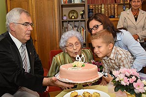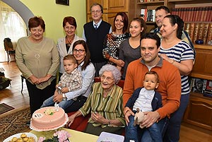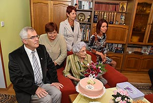 Mamikám - neked csak egy dolgod van, hogy mosolyogj! Természetesen Margit néni szót fogadott legkisebb unokájának és örült, hogy szerető családja körében ünnepelhette meg ezt a szép napot. A város nevében Dr. Demeter Attila alpolgármester köszöntötte az ünnepeltet.