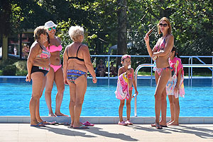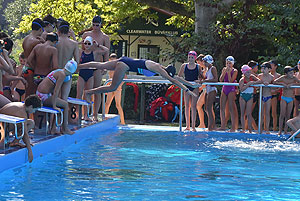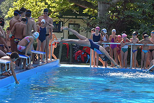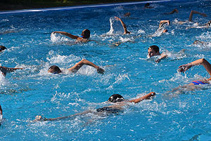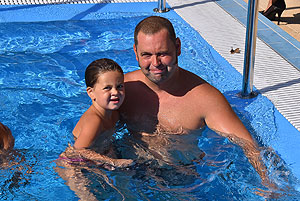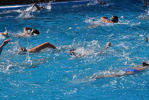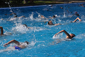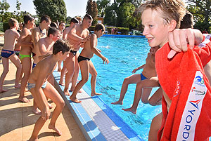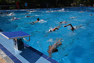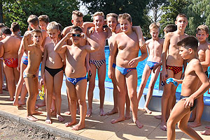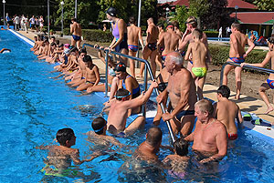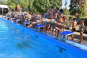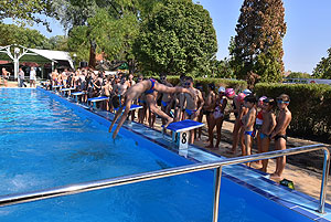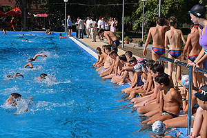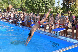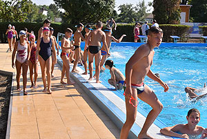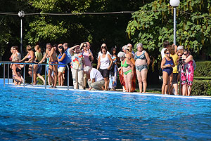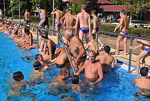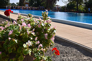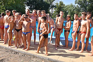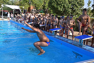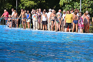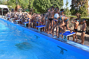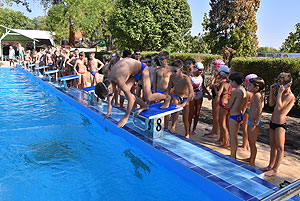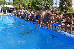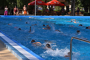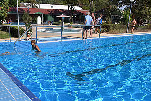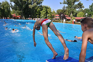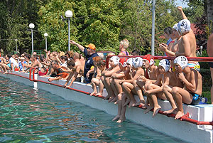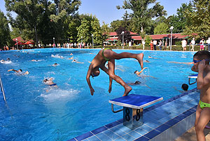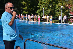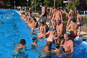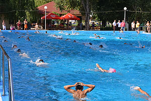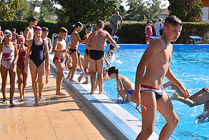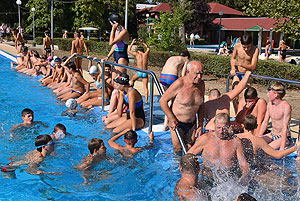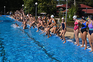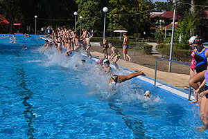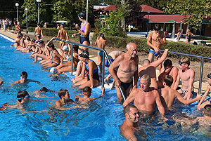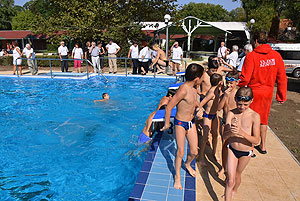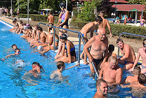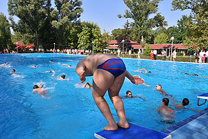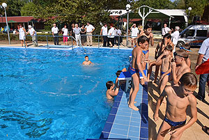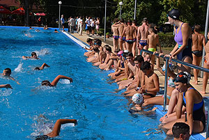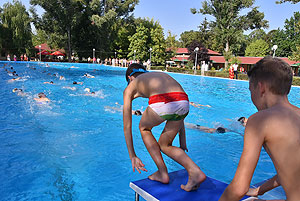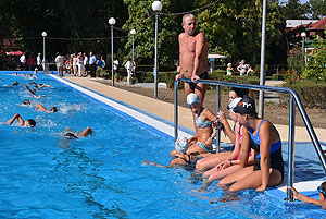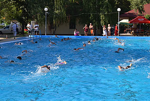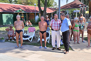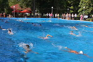 Varga Imre tiszteletbeli főúszómester sípszavára csobbantak a vízbe az úszóklub sportolói a megnyitó után. Természetesen a fürdőlátogatók is csatlakoztak a sportolókhoz, így most már teljessé vált az Üdülőközpont szolgáltatása.