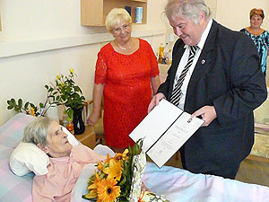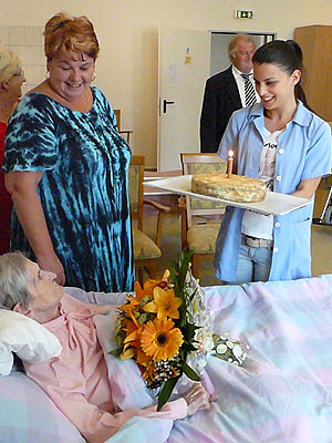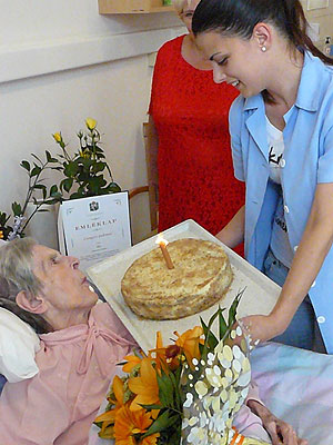 A Dr. Sipos Ferenc Parkerdő Otthonban köszöntötte Csengeri Andrásnét 90. születésnapja alkalmából Szirbik Imre polgármester. Piroska nénit az intézmény dolgozói kedvenc tortájával lepte meg ez alkalomból.