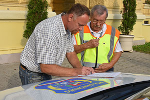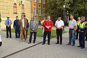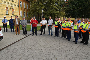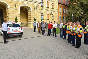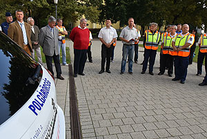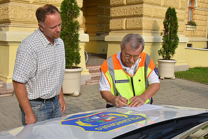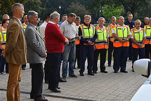 Farkas Sándor országgyűlési képviselő és Szirbik Imre polgármester adta át ünnepélyes keretek között az új autó kulcsát.