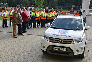 Nagy örömükre az egyesület nyert a pályázaton így egy új megkülönböztető jelzéssel felszerelt Suzuki terepjáró autó került Szentesre. Az új autót az egyesület szolgálati feladatai ellátására használja - hallhattuk 2015. szeptember 24-én az autó ünnepélyes átadásán a Kossuth téren.