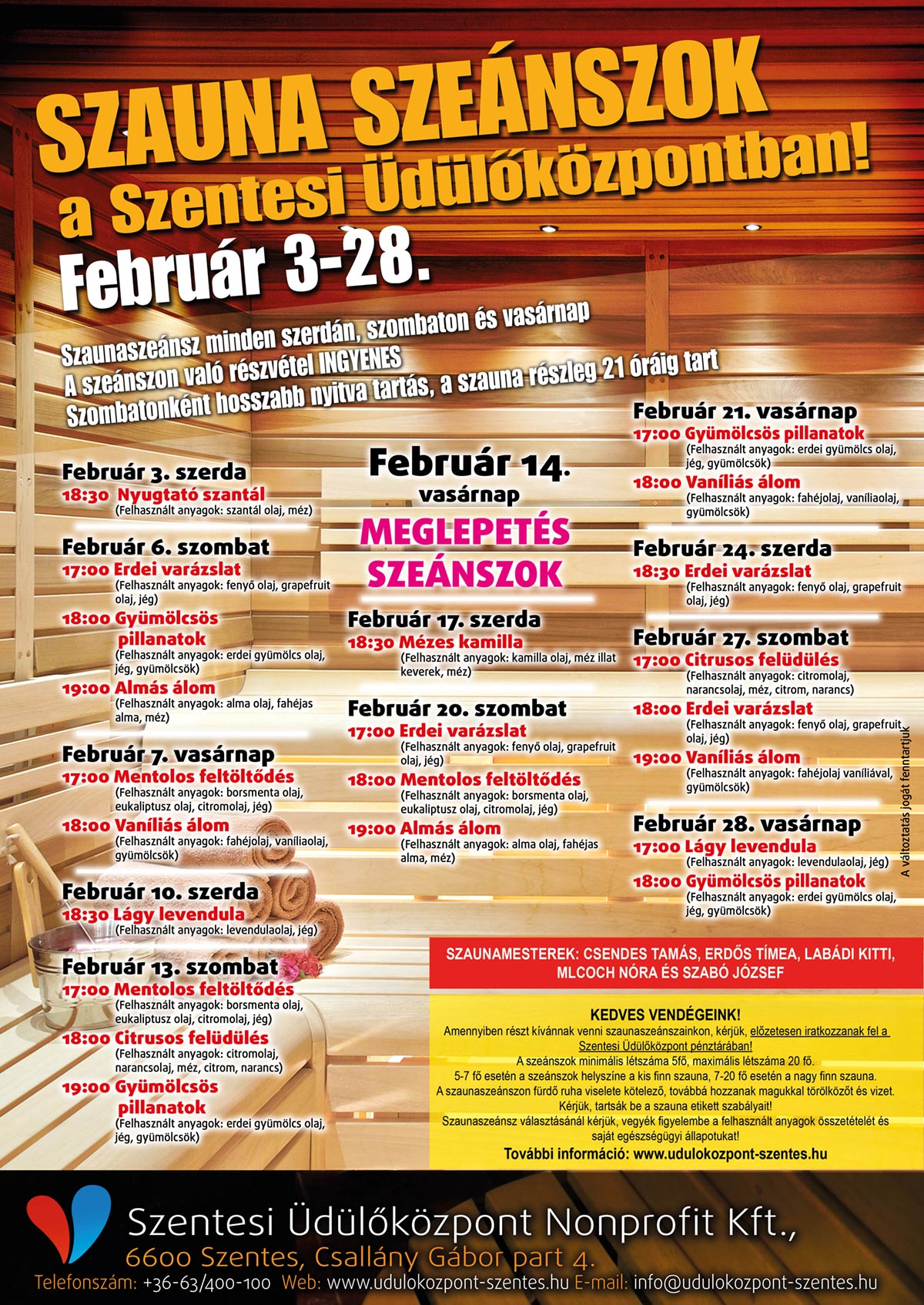 Az e havi szauna szeánszok összefoglaló plakátja!