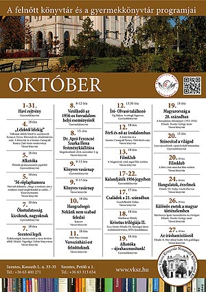Programokban dúskálhatunk városunkban októberben is. A Városi Könyvtár az alábbi programokkal kíván hozzájárulni ehhez a kultúraarzenálhoz! Nézze meg a kínálatot!