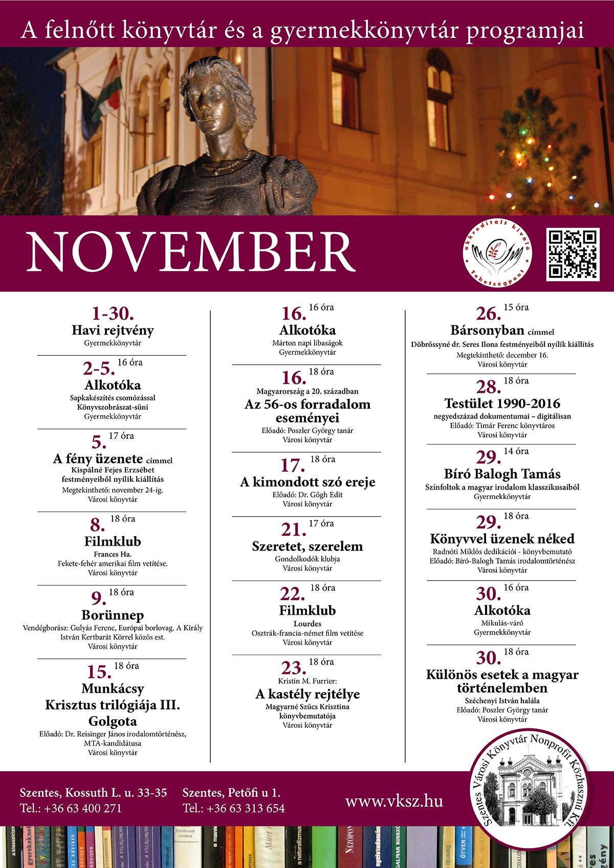 Ismételten gazdag programkínálatot állított össze a Városi Könyvtár novemberre is. Nézze meg a kínálatot!