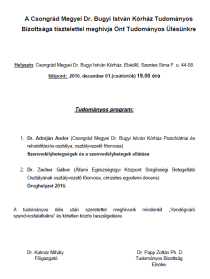 A Csongrád Megyei Dr. Bugyi István Kórház Tudományos Bizottsága tisztelettel meghívja Önt Tudományos Ülésükre