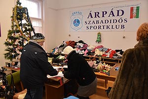 Az Árpád Szabadidős Sportklub idén is megszervezte a „Szeretetakció a szegények karácsonyáért” adománygyűjtő akciót, melynek keretében a pénzadományok jóvoltából tartós élelmiszer csomagokat készítettek, valamint a természetbeni felajánlásokkal tudták még azokat kiegészíteni, így több mint 200 rászoruló és nagycsaládok vehettek át azt az év utolsó napjain - tudtuk meg Krausz Jánosné képviselő asszonytól. A csomagok elkészítésében segített a Szentes Városért Civil Fórum, valamint önkéntes segítők, akik érzik , hogy bizony ezek a napok sokaknak nagyon nehéz. A csomagok átvételekor a gyermekek ajándékokat is választhattak a fenyőfa alól, valamint az anyukák válogathattak az összegyűlt ruhák közül.
