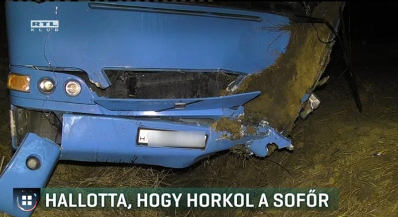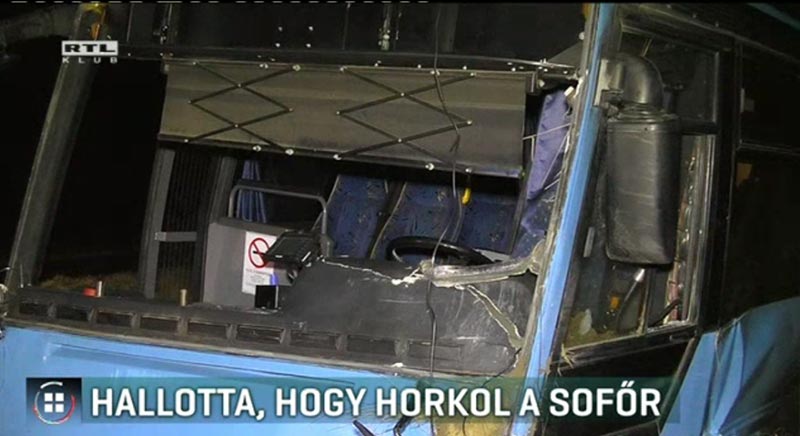 „Horkolva aludt vezetés közben a sofőr, ezért árokba csapódott egy menetrend szerinti busz Szentesnél", derült ki az RTL Híradójából. A buszon egyetlen egy utas utazott, aki megpróbálta ugyan felébreszteni a sofőrt, de nem járt sikerrel. A riportból az derül ki, hogy a busz sofőrje álmában lefejelte a kormányt, majd rálépett a gázra, a busz csak akkor állt meg, amikor kisodródtak egy kanyarban, majd több tábla és bokor kidöntése után végül egy árokban álltak meg. Az utas nem sérült meg, a sofőrnek azonban beszorult a lába, majd miután kiszabadították, kórházba szállították.