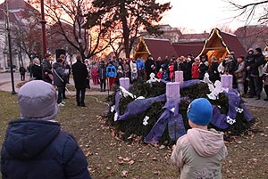 A délután 4 órakor kezdődő rendezvényen az Ichthys Keresztény Közösség zenés műsora után Gilicze Andrásné református lelkész mondta el az adventtel kapcsolatos gondolatait, majd felgyulladt a harmadik gyertyaláng is.