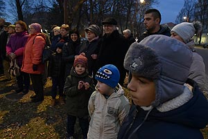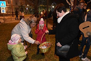 Advent harmadik vasárnapján (2016. december 11-én) is sokan voltak kíváncsiak a gyertyagyújtásra a Kossuth téren a városi adventi koszorúnál.