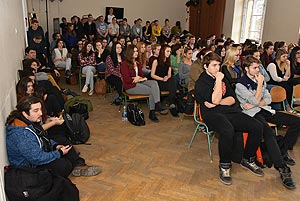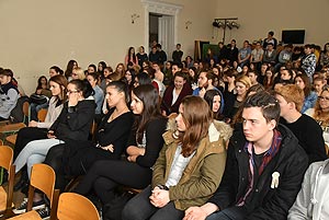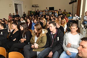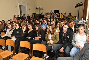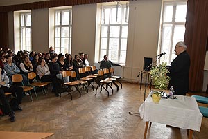 Ezen a napon az ötödik és a hatodik órában a gimnázium dísztermében rendhagyó történelem órán vehettek részt a végzős hallgatók, ahol emlékeiről és GYÖKEREIRŐL tartott előadást Sipos Árpád.