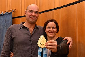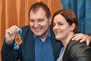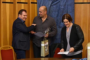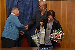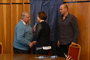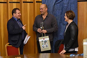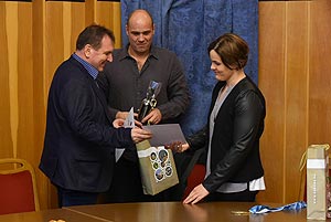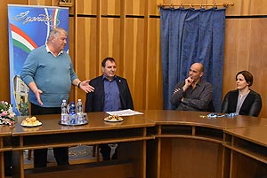 Szirbik Imre polgármester, Kovács János a Művelődési- Ifjúsági és Sportbizottság elnöke és Magyar József, a Szentesi Vízilabdaklub elnöke köszöntötte az eseményen a két sportembert.