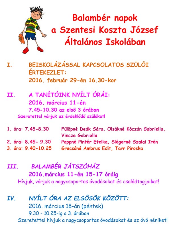Balambér napok a Szentesi Koszta József Általános Iskolában