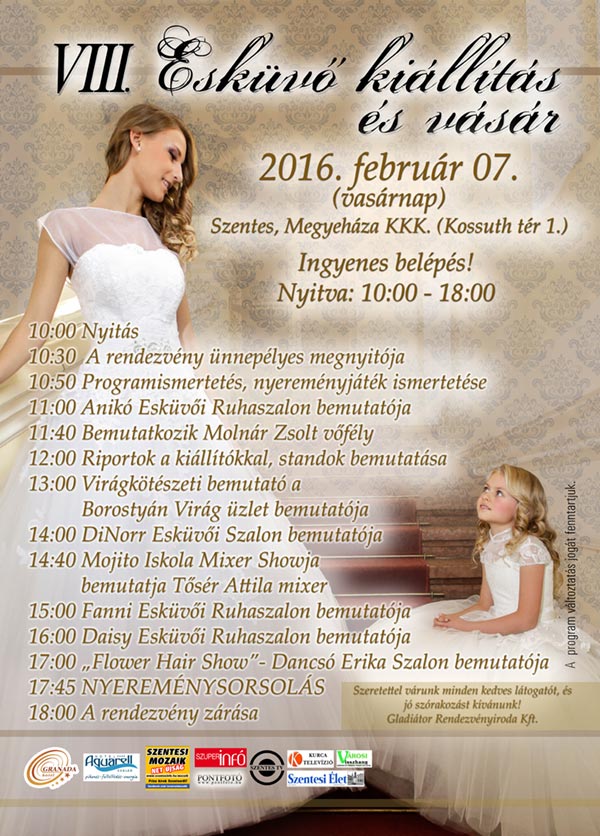 Két év kihagyása után Szentesen ismét megrendezésre került a immáron nyolcadik alkalommal, az Esküvő kiállítás és vásár. A február 7-i rendezvény helyszíne ez úttal is a patinás Megyeháza Konferencia és Kulturális Központ volt. A rendezvény nem csak a házasodni kívánó párokat, illetve a kismamákat várta meglepetésekkel (akik külön nyereményjáték részeseként megnyerhettek egy álom wellness hétvégét). Minden látogatót érdekes, kikapcsolódást segítő programok, ízlésesen feldíszített standok, és segítőkész szakemberek vártak.