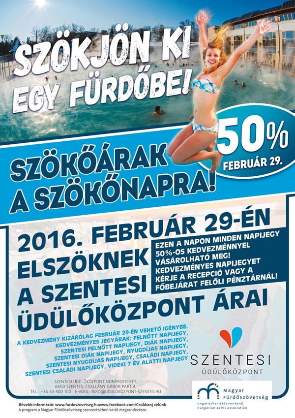 Szökőárak a szökőnapra FEBRUÁR 29-ÉN ELSZÖKNEK A SZENTESI ÜDÜLŐKÖZPONT ÁRAI