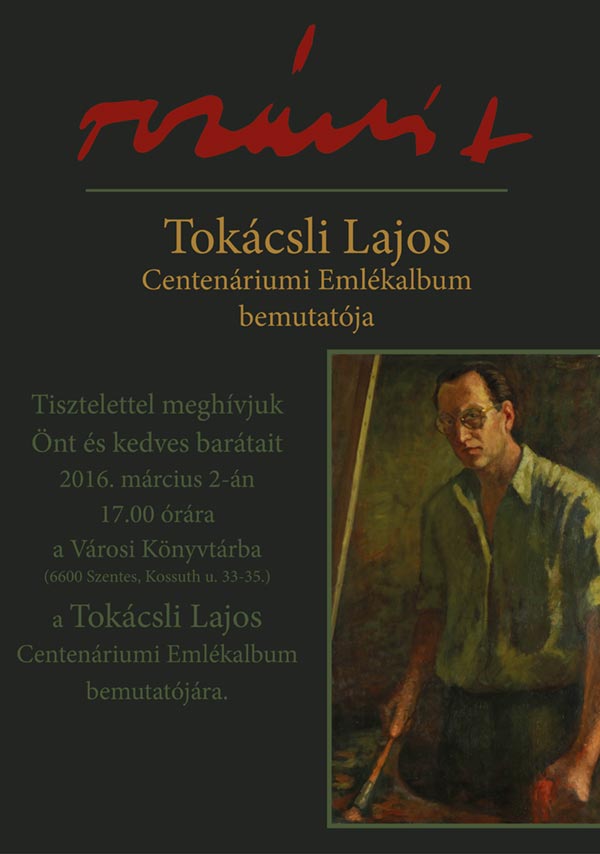 2016. március 2-án mutatják be az alkotók a Tokácsli centenáriumi emlékalbumot a Városi Könyvtárban, melyre minden érdeklődőt szeretettel várnak. Tokácsli Lajos művészetének beágyazottsága Szentes kultúrtörténetébe ma már evidenciának tűnik, hiszen nevét emléktábla őrzi, a városi galéria is rá emlékeztet, és valljuk be: Koszta után ő az az alkotó, akinek munkássága a mai nemzedékek tudatában a Szenteshez köthető képzőművészetet jelenti. Ugyanakkor fájdalmas tény, hogy Tokácsli emberi és művészi értékét mindmáig nem mérték föl a maga teljességében.