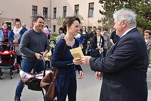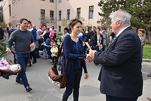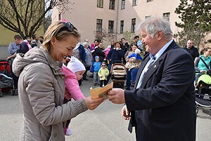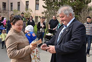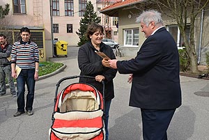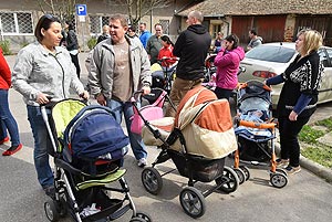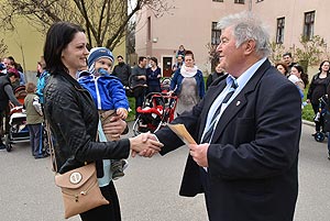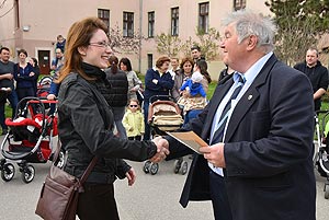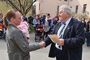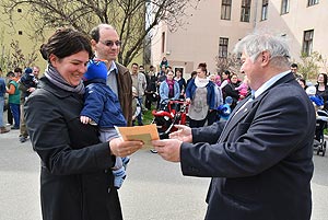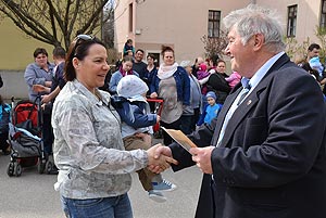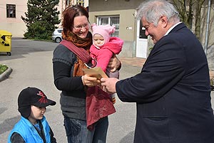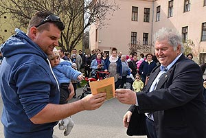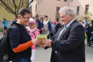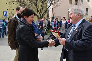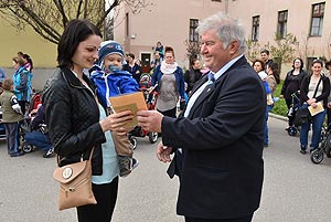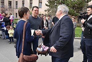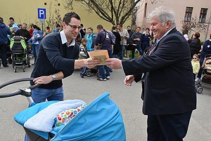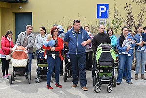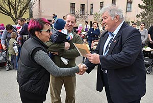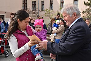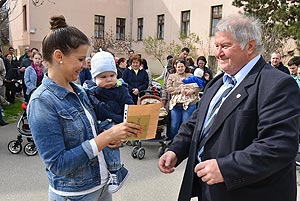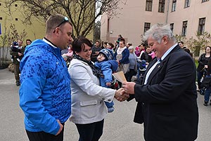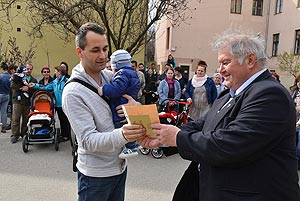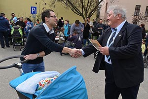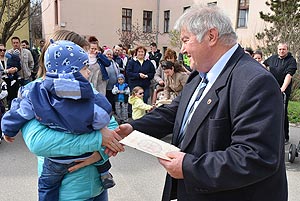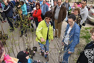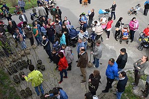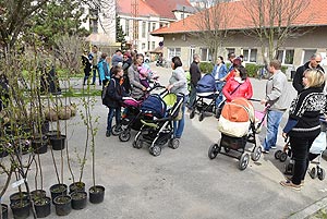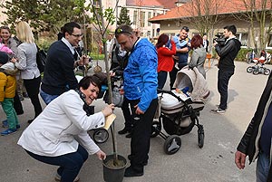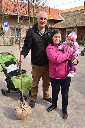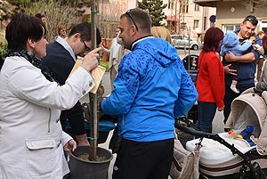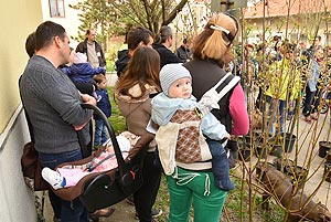 Az új jövevények szüleik, nagyszüleik és testvéreik kíséretében érkeztek, hogy átvegyék a város vezetőjétől a facsemetét egy emléklappal és a táblával, amelyen a belevésett szöveg tudatja: ki a gazdája a fának.