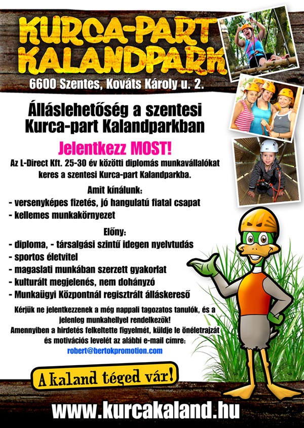 Álláslehetőség a szentesi Kurca-part Kalandparkban Jelentkezz MOST!