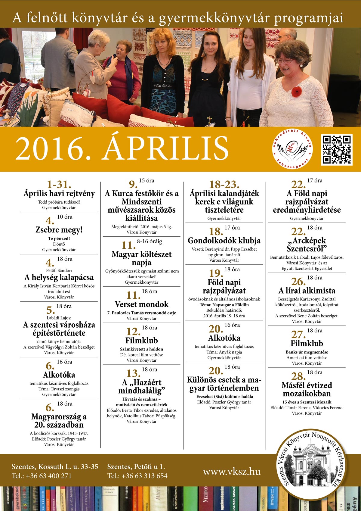 Összeállt a Városi Könyvtár április havi programja, melyet az alábbi plakát foglal össze! Jó böngészést és kellemes kikapcsolódást kívánunk hozzá!