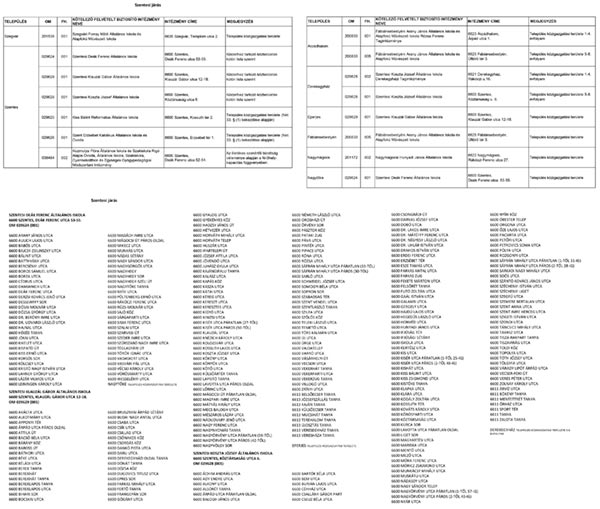 A Szentes Járás általános iskoláinak felvételi körzetei: