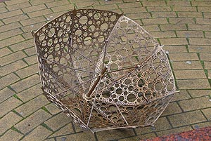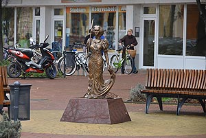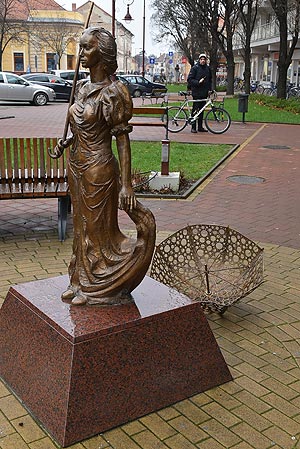 A címben olvasható beszélgetés zajlott le 2016. március 16-án reggel a Kossuth téren a Napernyős lány szobornál. Igen megint letörték a szobor napernyőjét! Volt aki azt mondta, hogy biztos újságíró törte le, mert kell a hír! Csak eddig mindig bebizonyosodott, hogy erős fiatalok voltak a tettesek. Szerintünk már annyi pénzt áldoztak ennek a szobornak a javítására, hogy abból már két kamerára is futotta volna. Lehet viszont az is, hogy talán javítási minőséget akart az illető ellenőrizni, csak egy picit túl lőtt a célon!? A rendőrség majd kideríti, csak ebben a történetben az a baj, hogy a szoborlány a visszaeső áldozat!