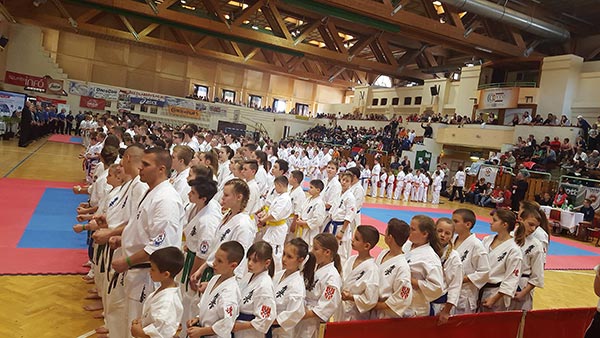 Nem sokkal tíz óra után kezdődött az ünnepélyes megnyitó, melyen a résztvevők üdvözölhették kancho Gerard Gordeau-t, az IBK világszervezet igazgatóját, sihan Furkó Kálmánt, a magyar kyokushin egyik alapítóját, sihan Gregor Lászlót, a Békés megyei Karate Szövetség elnökét, sihan Brezovai Sándort, a Honkyokushin világszervezet elnökét, hogy csak néhányat említsünk a sok kiválóság közül. A négy országból érkezett versenyzőket Sihan Zsiga Zsolt köszöntötte, majd Fejes Róbertné alpolgármester ünnepélyes megnyitóját követően Sihan Furkó Kálmán és sihan Brezovai Sándor mondott a versenyzőknek biztató szavakat.