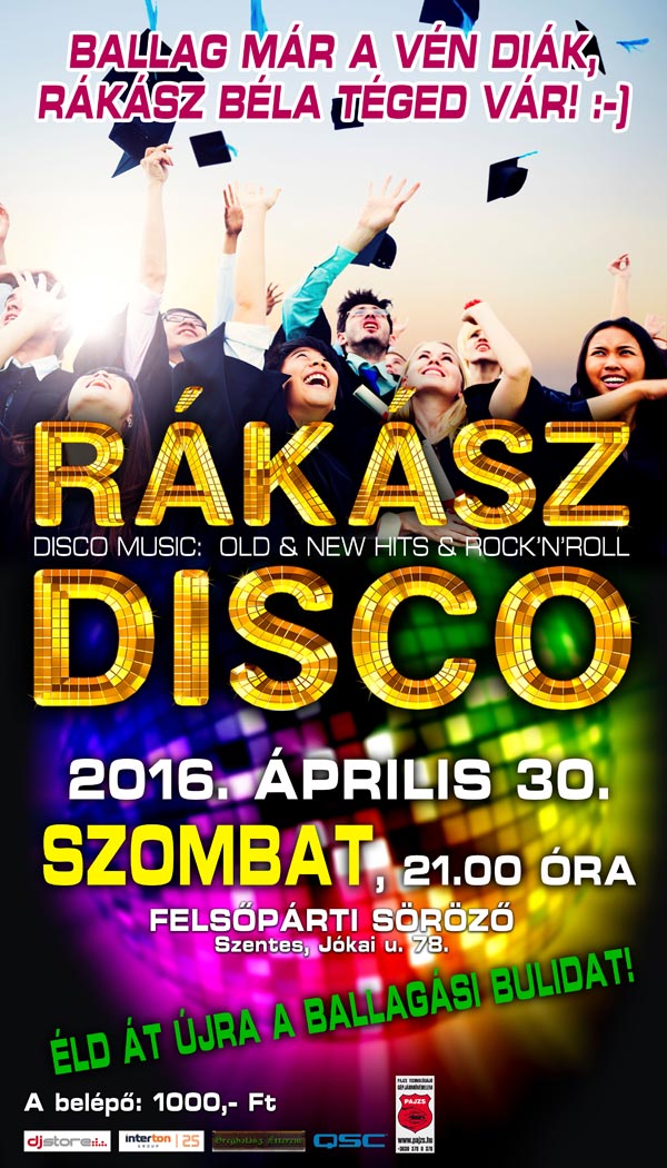 Szereted a retro zenét, akkor április 30-án a kimerítő ballagás után Téged is vár Rákász Béla egy igazi pörgős érettségi előtti bulival.