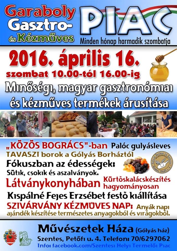 A hétvégén újra kinyit a Garaboly Gasztro- és Kézműves Piac a Művészetek Házában! Jó vásárfia keresést kívánunk! További részletek a plakáton!