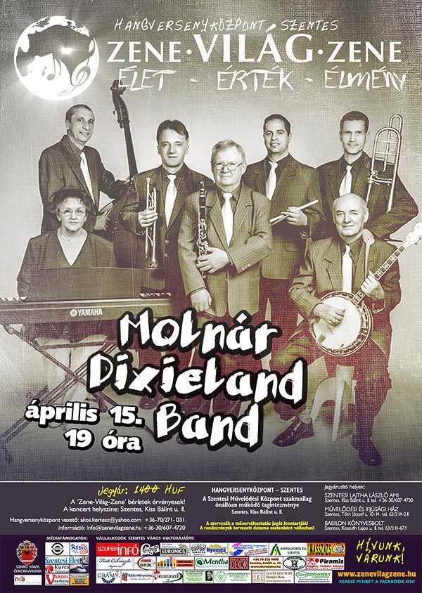 Zene-Világ-Zene 2016. április 15. (péntek) 19 óra: Molnár Dixieland Band Tv-spot: https://www.youtube.com/watch?v=msAbNtz8j08