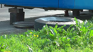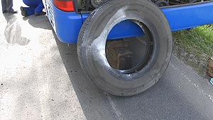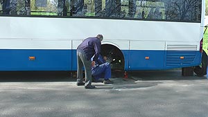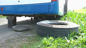 Először kitört utána pedig kigyullad egy távolsági autóbusz kereke