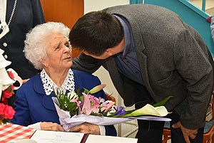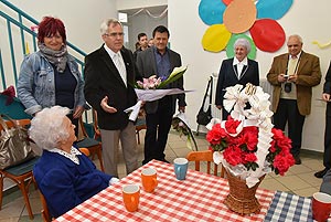 A város nevében Dr. Demeter Attila alpolgármester, Szabó Andrea és Antal Balázs Tibor önkormányzati képviselők köszöntötték az ünnepeltet, és adták át Orbán Viktor miniszterelnök üdvözlőlapját.