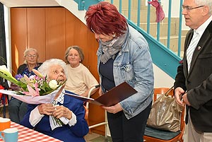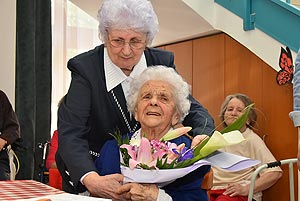 Bodrogi Istvánné Rózsika nénit ünnepelték 2016. április 22-én a Református Idősek Otthonában, ahol azért gyűltek össze a lakók, hogy születésének a kerek 100 éves évfordulóját köszöntsék.
