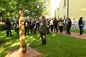 A közös képen együtt mosolyognak a mentősök azokkal a hölgyekkel, akik szabad szombatjukat áldozták azért, hogy a megújult mentőállomás ütött-kopott kerítését is új "ruhába" öltöztessék. Egész nap kevertek, kentek, kapartak, csiszoltak, hogy a homlokzati színekkel harmonizálva újra fessék a kerítést. Hatalmas köszönet érte! A hölgyek a szomszéd város állateledeleket gyártó multinacionális cégénél dolgoznak.